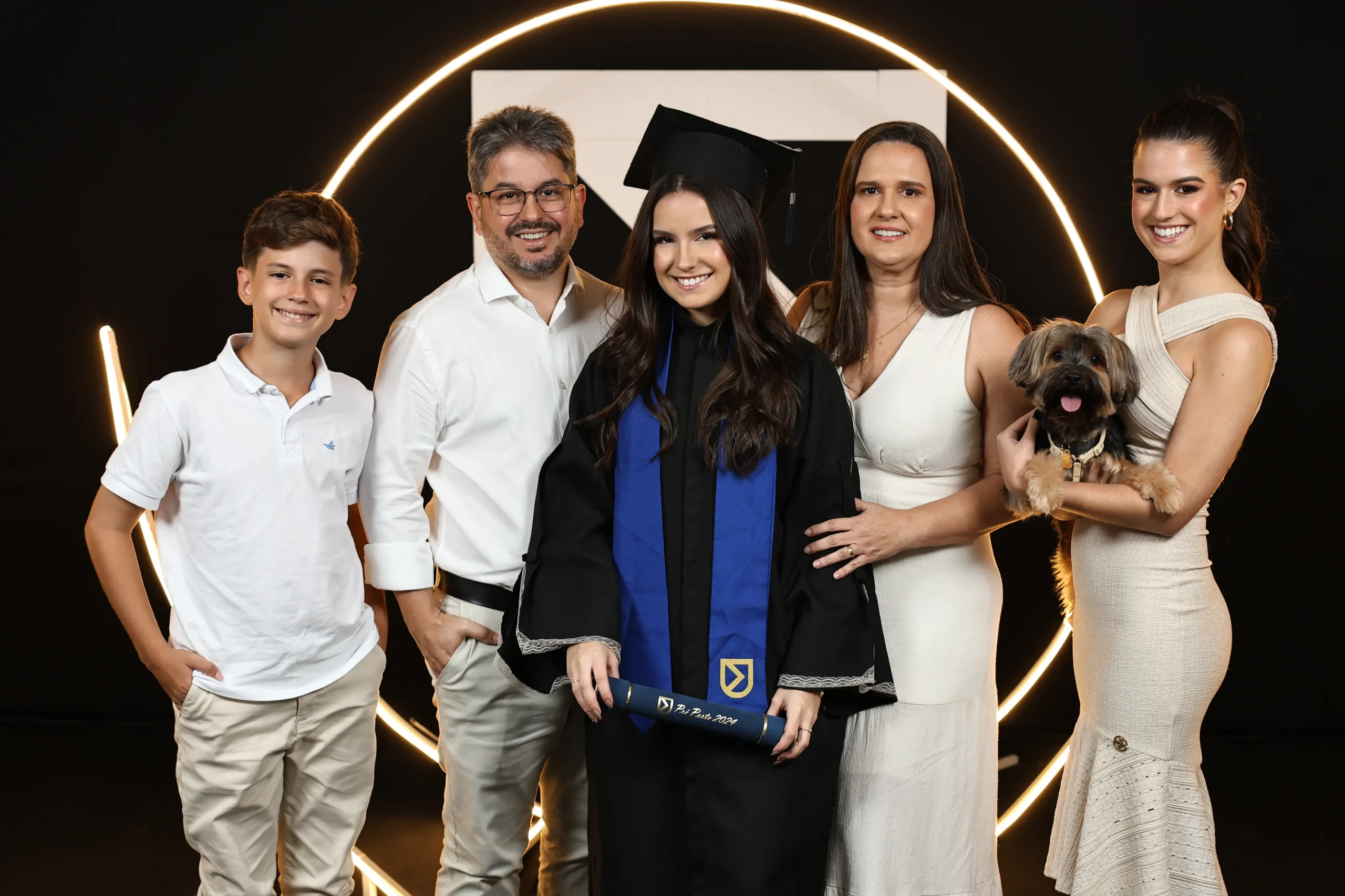 Cada formando pode levar até 12 convidados. É o suficiente para reunir a família, os mais próximos e até o pet, que também é bem-vindo nesse momento especial.